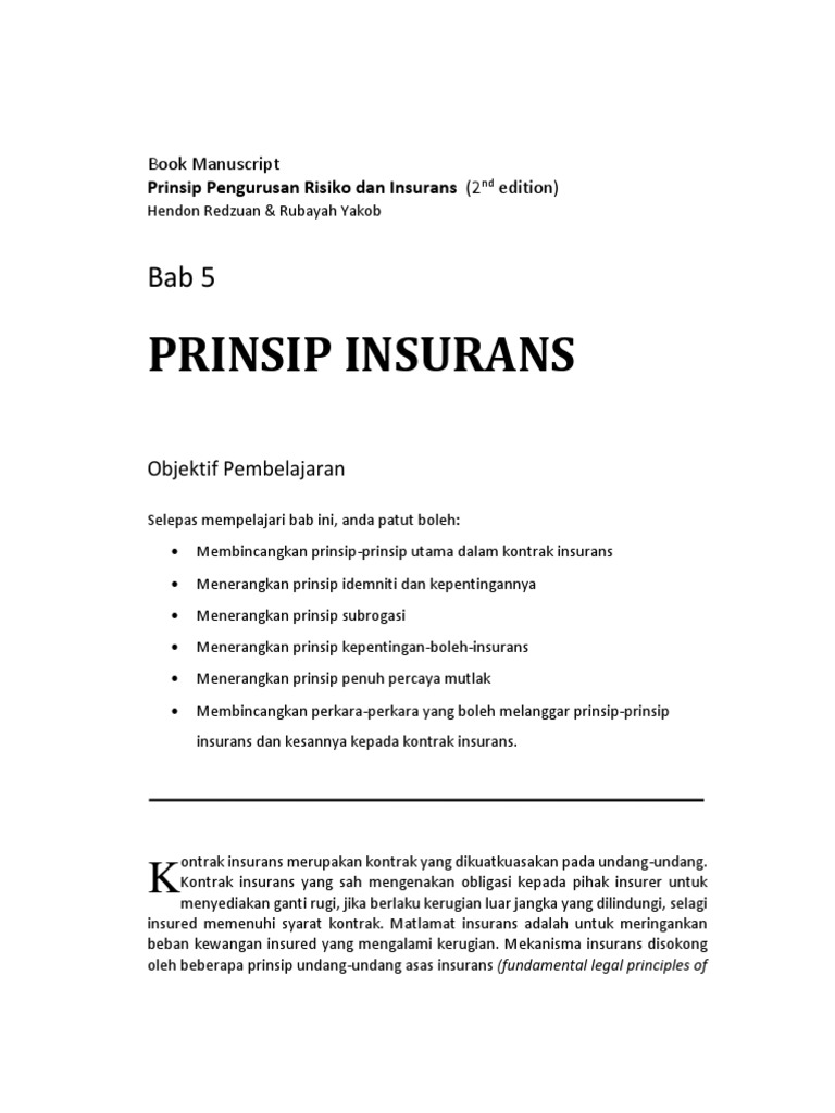 Undang Undang Insurans Law Of Insurance Pemakaian Prinsip Am Undang Undang Course Hero